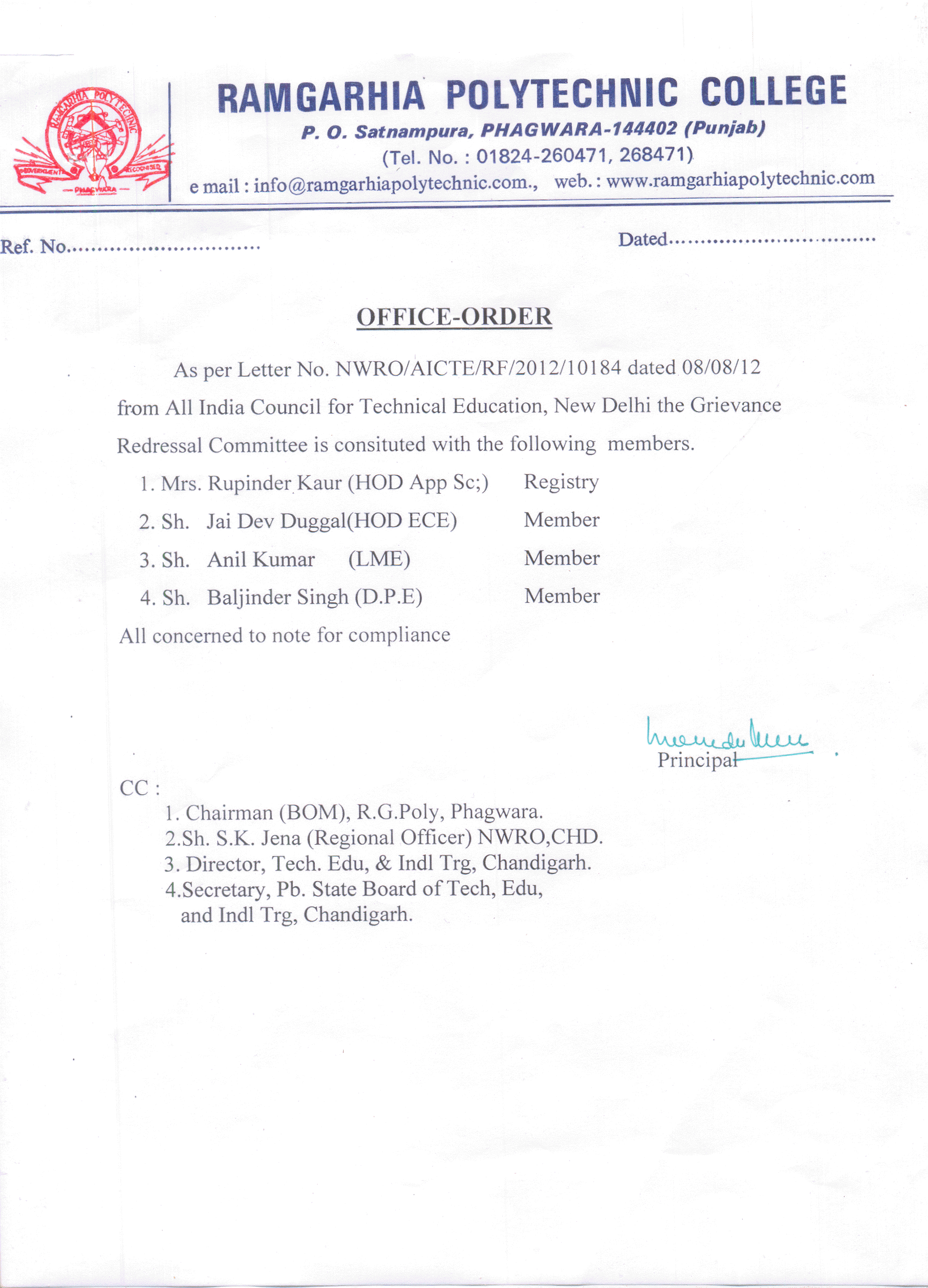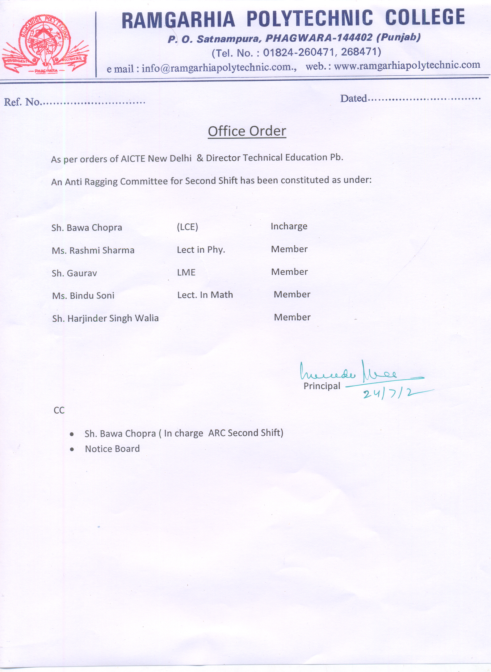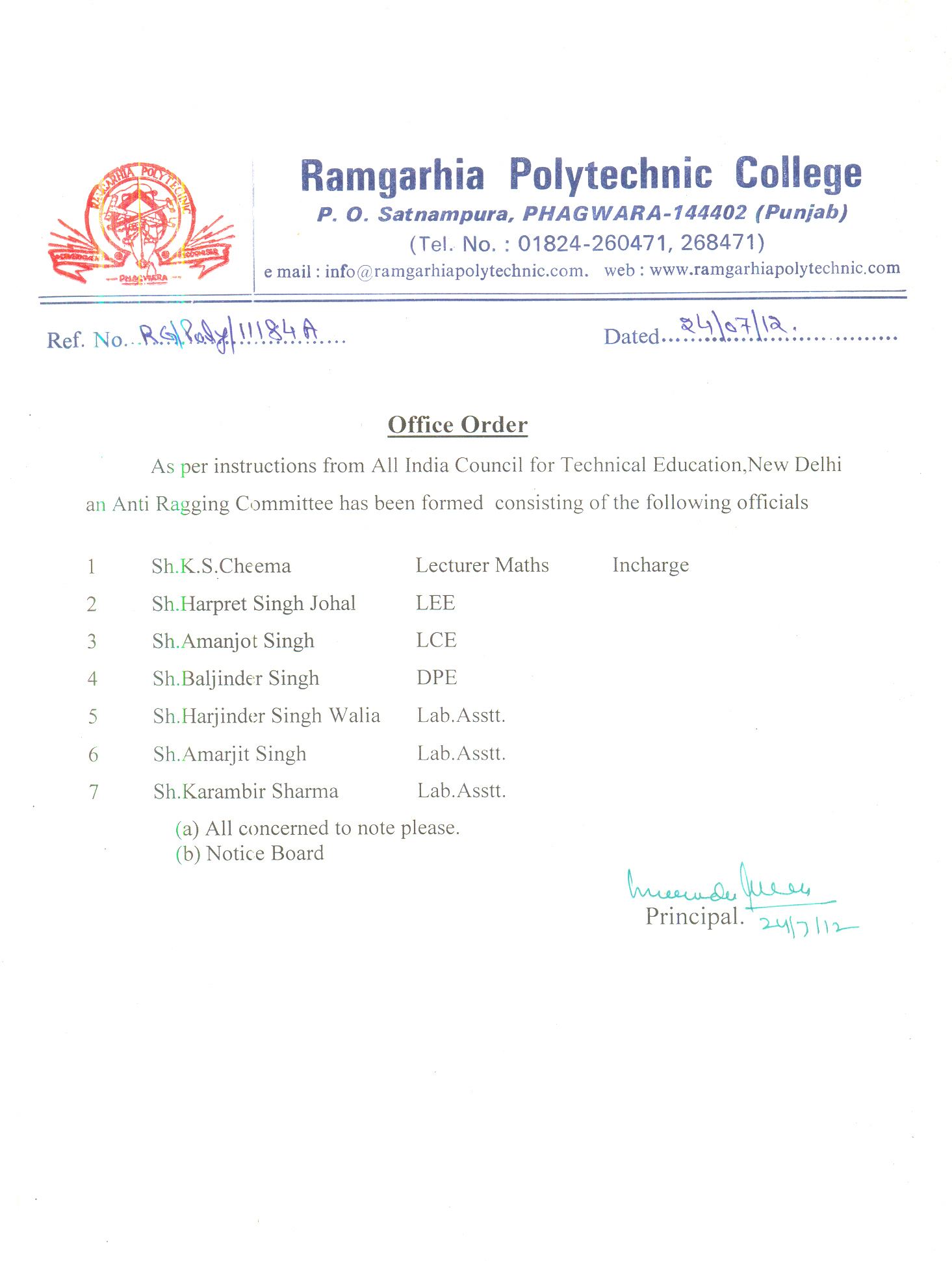This is for your information that classes of 3rd. & 5th. semester of all branches will commence from July 16,2012. You are directed to attend the classes as per time table displayed on the college Notice board. Principal |
