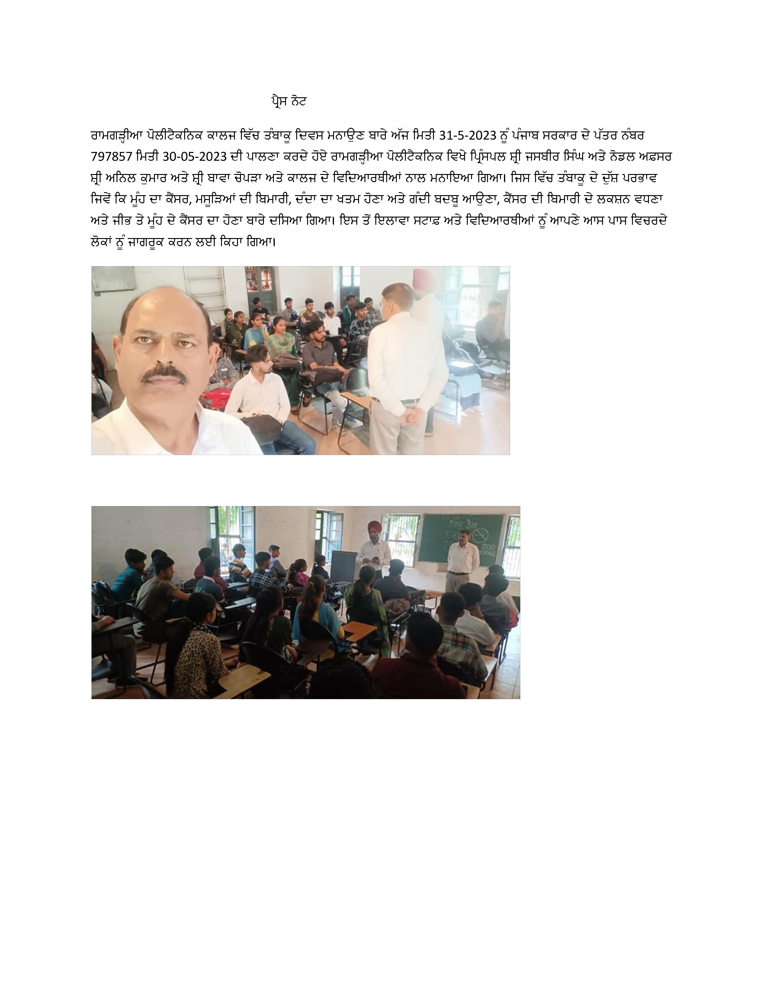 Call: 01824-260471, Fax: 01824-268471, Email: info(at)ramgarhiapolytechnic(dot)com
