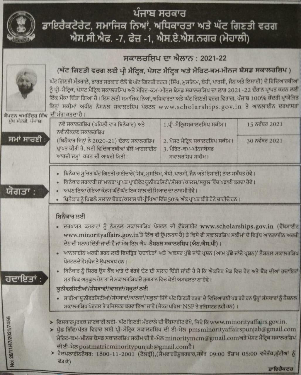 Sholarship for SC students