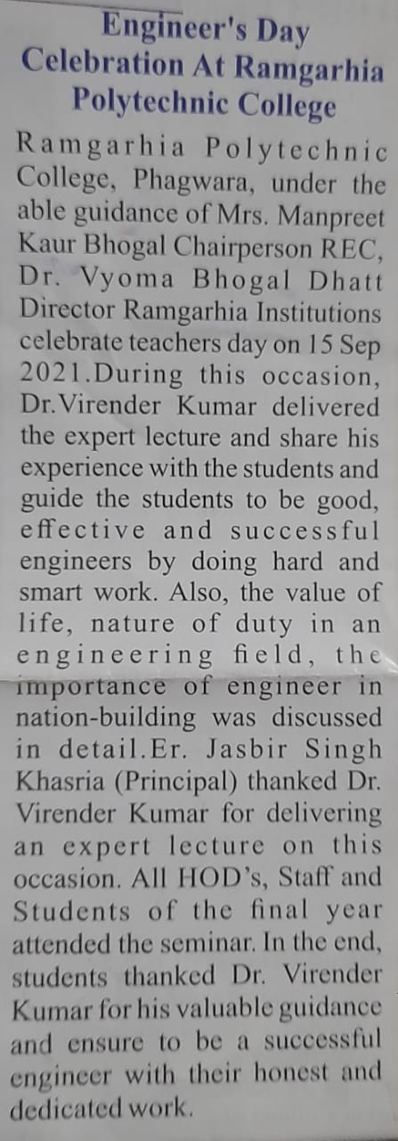 Ramgarhia Polytechnic College, REC Complex, Satnampura, Phagwara - 144401 Punjab IN