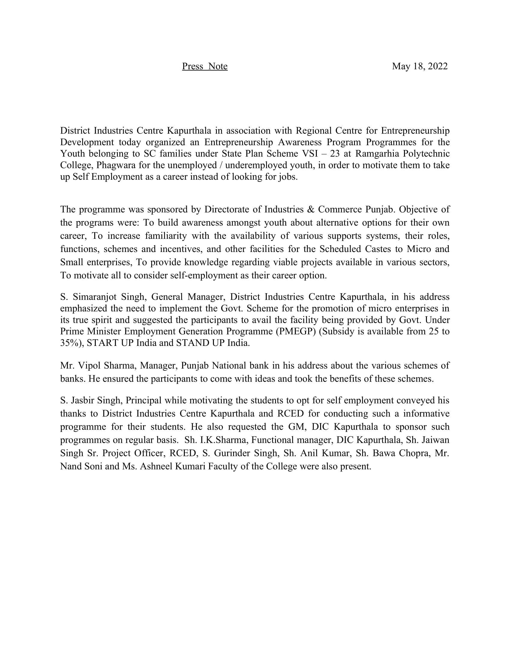 ALUMI VISIT TO RAMGARHIA POLYTECHNIC COLLEGE