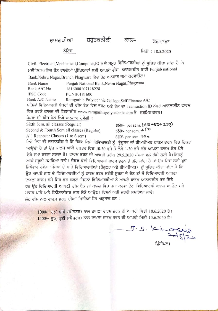 You can also find this link on college website www.ramgarhiapolytechnic.com under news and event section of website.